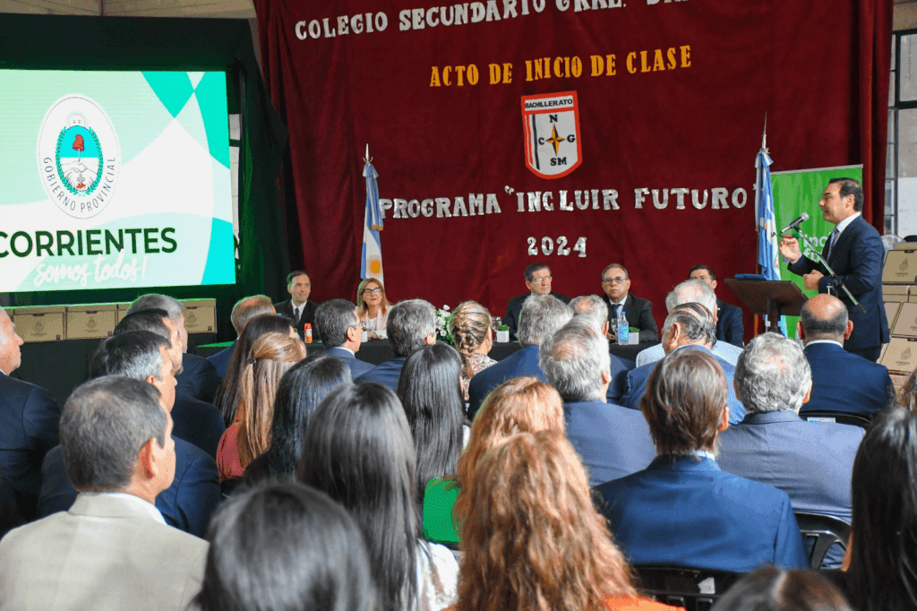 El gobernador de la provincia presidió este lunes la apertura del Ciclo lectivo 2024 desde el Colegio General San Martín de la ciudad Corrientes. En este marco, además, encabezó la entrega de 499 notebooks del Programa Incluir Futuro, a alumnos del segundo año de la institución anfitriona, del Colegio Secundario Manuel Belgrano y de la Escuela Técnica Carmen Molina de Llano. Al finalizar el acto, el mandatario destacó “el esfuerzo económico enorme que están haciendo todos los correntinos” para un nuevo inicio de clases.