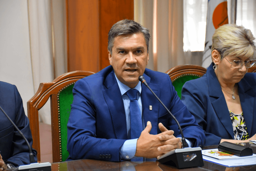 El rector Omar Larroza recibió inicialmente a las autoridades provinciales en su despacho y posteriormente se llevó adelante una conferencia en salón del Consejo Superior del mismo Rectorado.