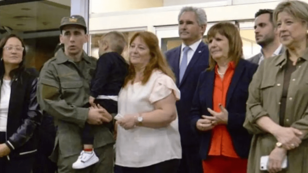 Además de su familia lo recibieron el canciller Pablo Quirno, la ministra de Seguridad, Alejandra Monteoliva, y su antecesora, Patricia Bullrich, actual jefa de bloque de La Libertad Avanza en el Senado.