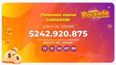 Un apostador de Ituzaingó se convirtió en el nuevo millonario de la provincia tras ganar más de $240 millones en la Quiniela Poceada Correntina. El premio extraordinario del 12 de febrero es de $242.920.875 correspondió a la jugada que acertó los cinco números que definieron el pozo acumulado.