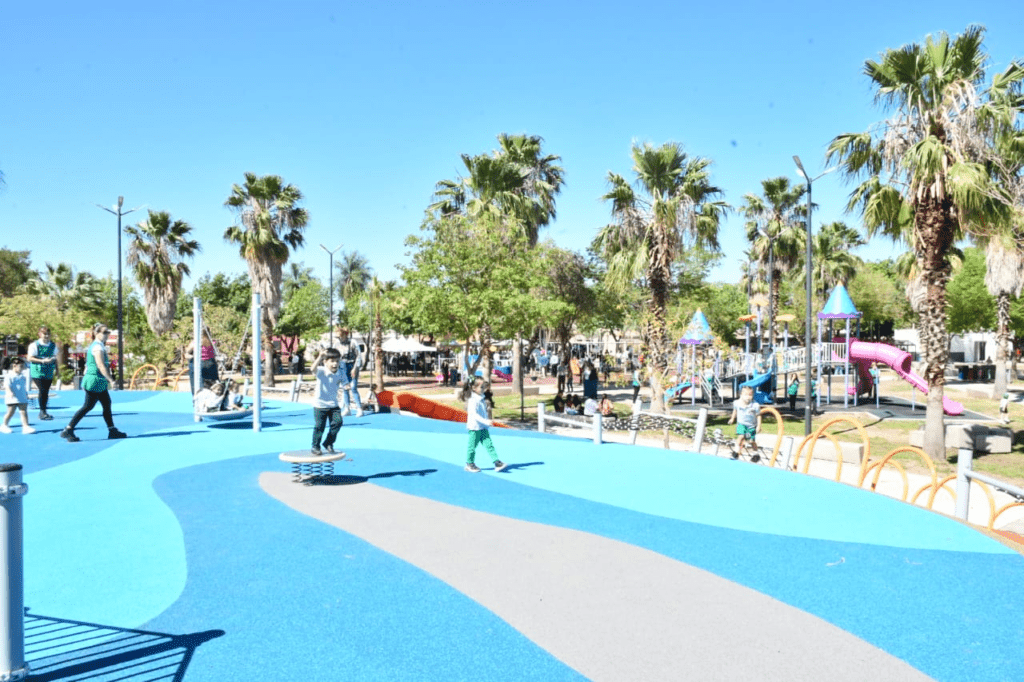 Uno de los cambios más visibles es la incorporación de 2.000 metros cuadrados de sectores de juegos infantiles para niñas y niños, con suelo de goma que reducen el riesgo de golpes y estructuras diseñadas bajo normas IRAM, además de módulos integradores para personas con movilidad reducida.
