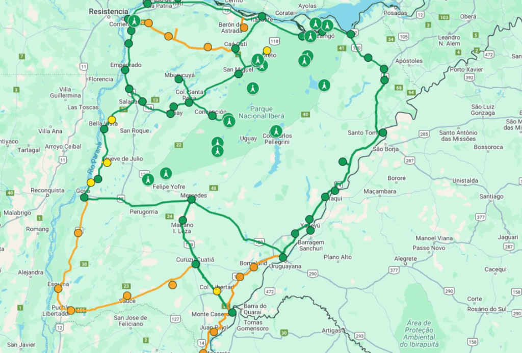 Corrientes Telecomunicaciones cede a ARSAT los tramos Paso de los Libres – Alvear; Alvear – Santo Tomé; Santo Tomé – Gobernador Virasoro y Gobernador Virasoro – RN 14/RN 120. Es decir, un total de 269,8 kilómetros. En tanto ARSAT cede a Corrientes Telecomunicaciones los tramos que conectan por Ruta Nacional Nº12 – Goya – Acceso Pueblo Libertador; Paso de los Libres – Monte Caseros, por un total de 230,5 kilómetros; y también un tramo de la Ruta Provincial Nº27 – Cruz de los Milagros, con una extensión de 5 kilómetros.