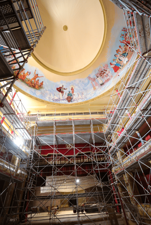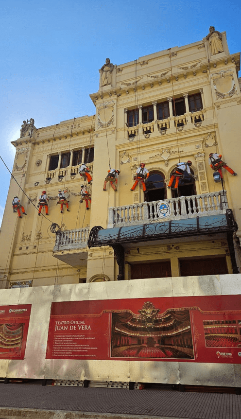 El gobernador Gustavo Valdés dio a conocer este domingo en sus redes sociales que “continúa la restauración integral del teatro Juan de Vera: ahora, con trabajos de revoques, pintura y pátinas sobre las esculturas y los moldeados tanto de la fachada como de los palcos realizados artesanalmente gracias a la labor de profesionales especializados en restauración”.