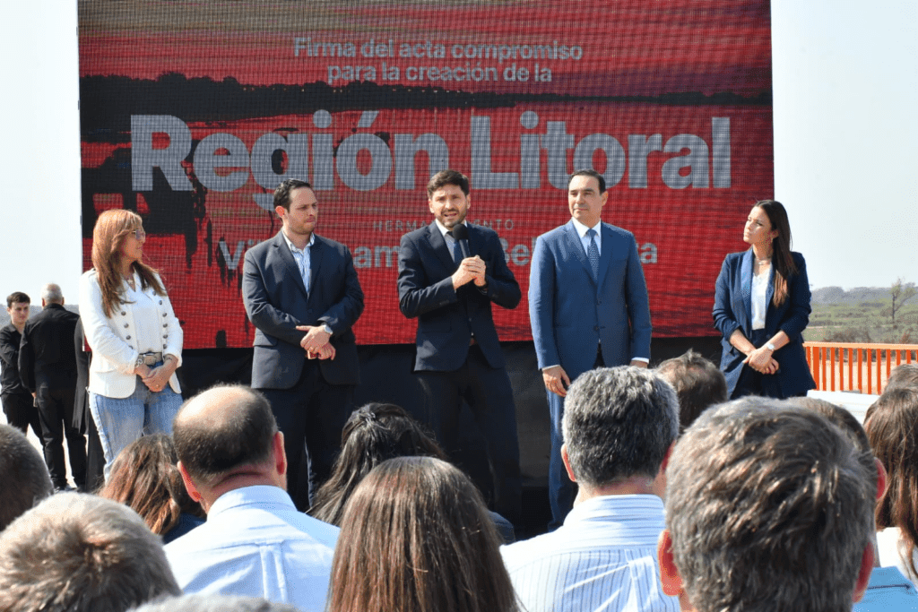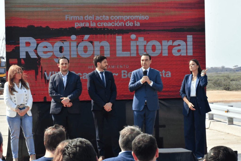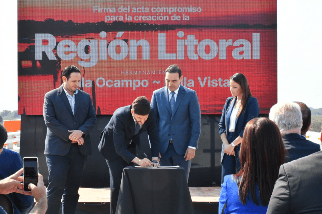 El gobernador Gustavo Valdés firmó este jueves junto a su par de Santa Fe, Maximiliano Pullaro un acta de compromiso para la creación de la Región Litoral, iniciativa que permitirá concretar políticas públicas sobre los intereses comunes de ambas provincias. Durante el acto, realizado en la localidad santafesina de Villa Ocampo, también se firmó un acta de hermanamiento entre esta ciudad y la correntina Bella Vista.