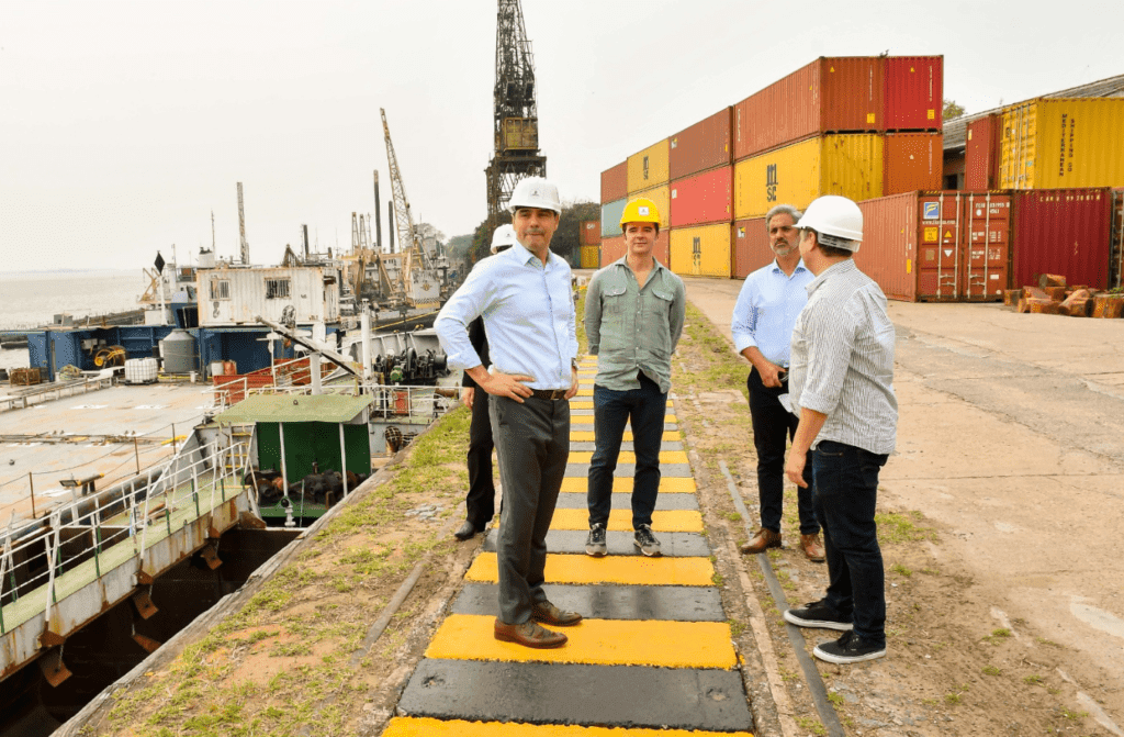 Acompañaron en esta recorrida al gobernador la ministra de Industria, Mariel Gabur y el director de Transporte Fluvial y Puertos, Adolfo Escobar Damus; en representación de MSC, Alonso Sopeña Guillén, Pablo López y Romina Moreno, gerente general, gerente de logística y directora comercial, respectivamente.