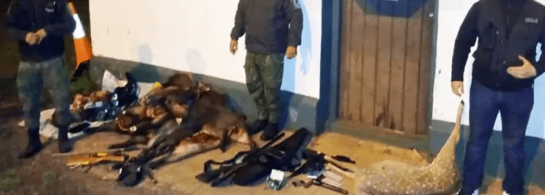 Llevaban 7 carpinchos y un ciervo ya faenados.