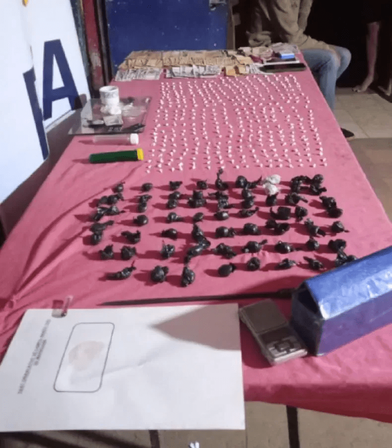 Con la información parcial sobre las sospechas de venta de droga en el lugar, el fiscal Flavio Ferrini y el Juzgado Federal de Primera Instancia de la capital correntina, dieron luz verde para que los efectivos de la DUOF catearan la propiedad, donde hallaron más de 70 envoltorios de polietileno negro, conteniendo marihuana; mientras que en otro sector de la casa hallaron fraccionadas y listas para la venta, cerca de 400 microdosis denominadas “alitas” de cocaína, unos $450.000 en efectivo, dos teléfonos celulares, balanza de precisión y otros elementos de interés para la causa.