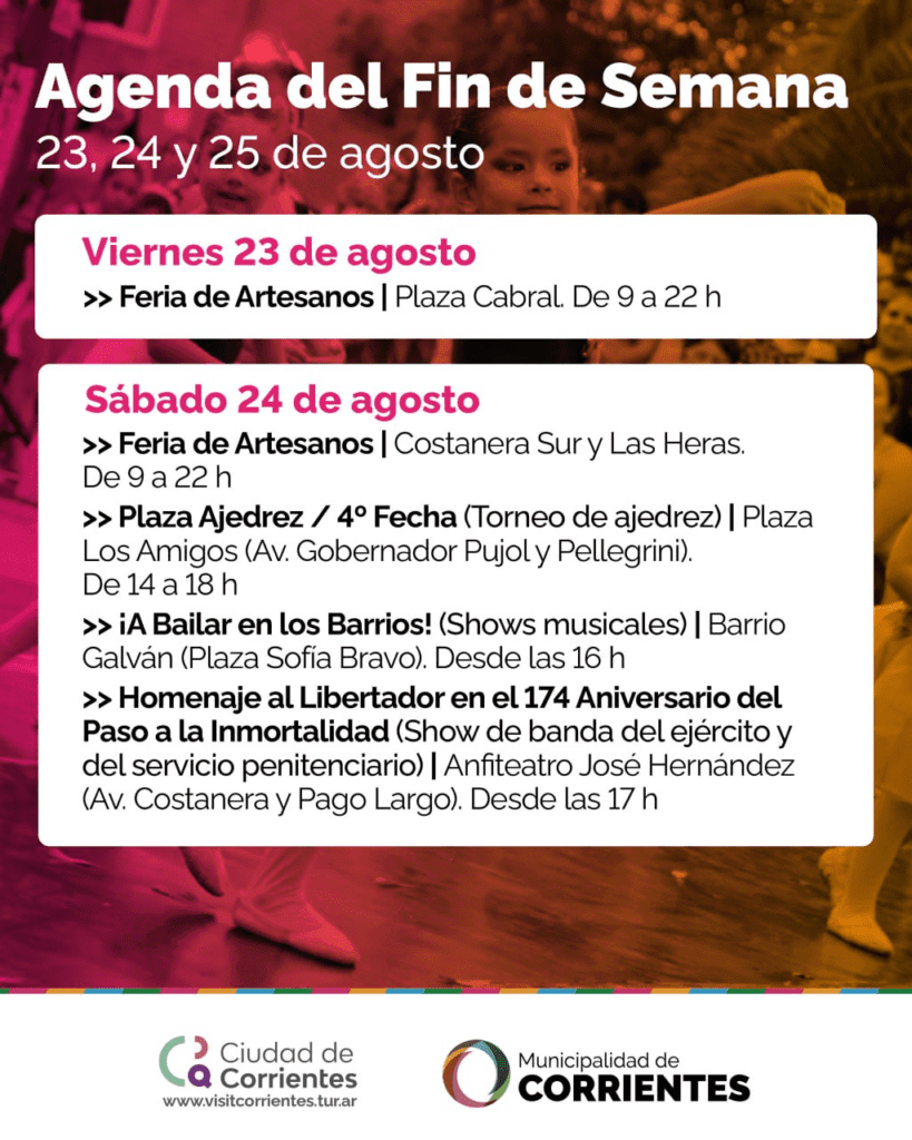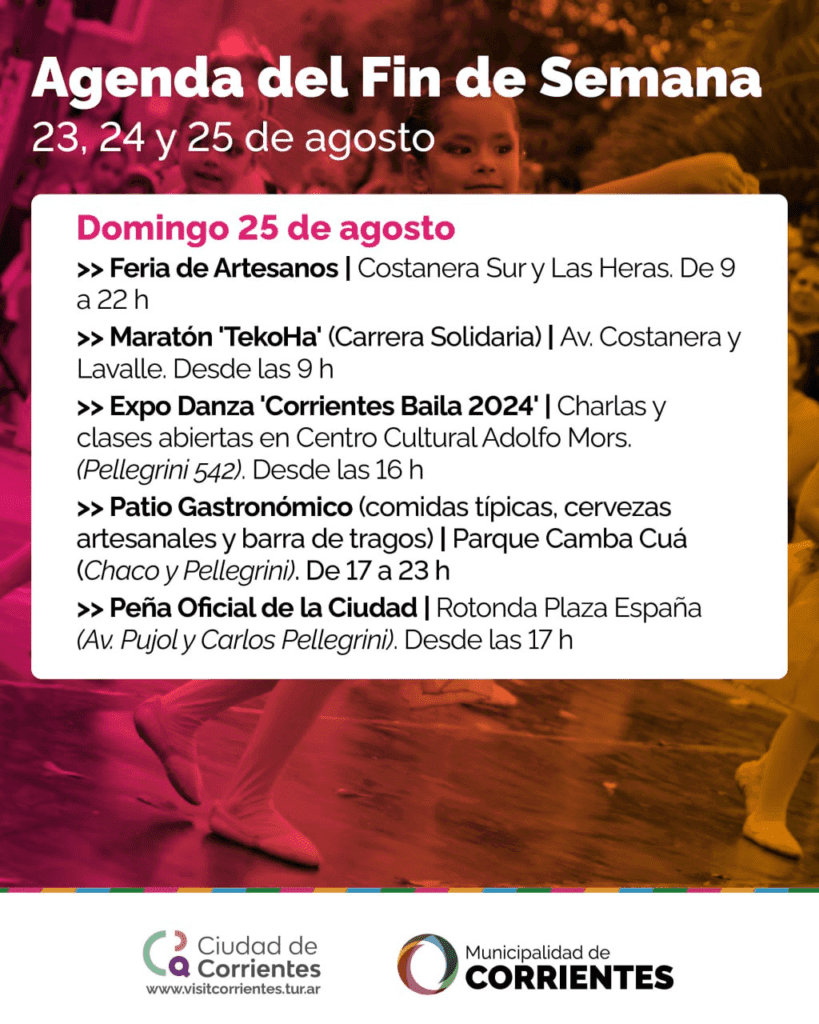 La Municipalidad de Corrientes organizó un amplio abanico de actividades para disfrutar de viernes a domingo en distintos espacios públicos. Habrá danza, música, ferias, cerveza artesanal, gastronomía local y una maratón por la costanera.