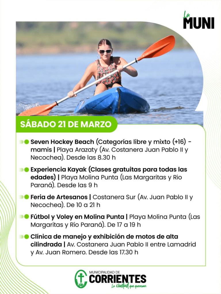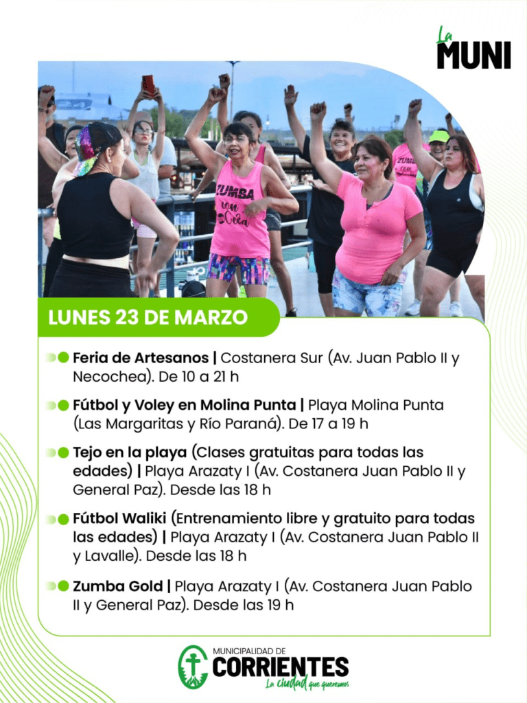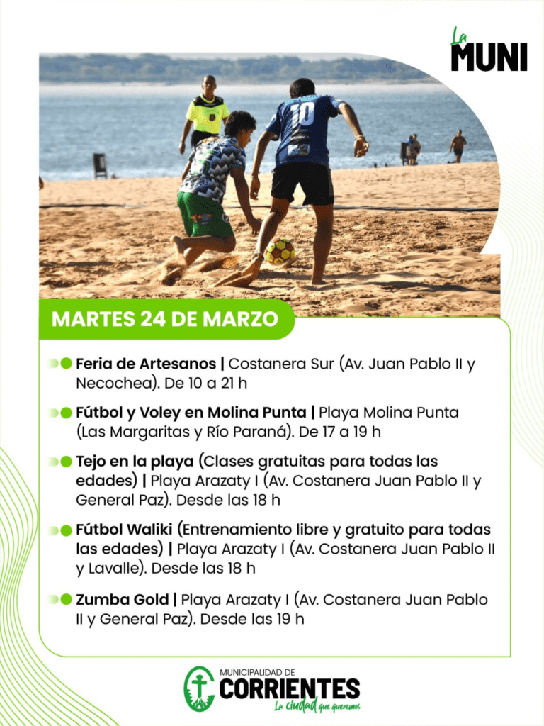 La Municipalidad de Corrientes preparó una nutrida agenda de actividades recreativas, deportivas y culturales para este fin de semana largo. Las propuestas se desarrollarán en distintos espacios públicos de la ciudad, principalmente en las playas y paseos costeros, con acceso libre y gratuito para todas las edades.