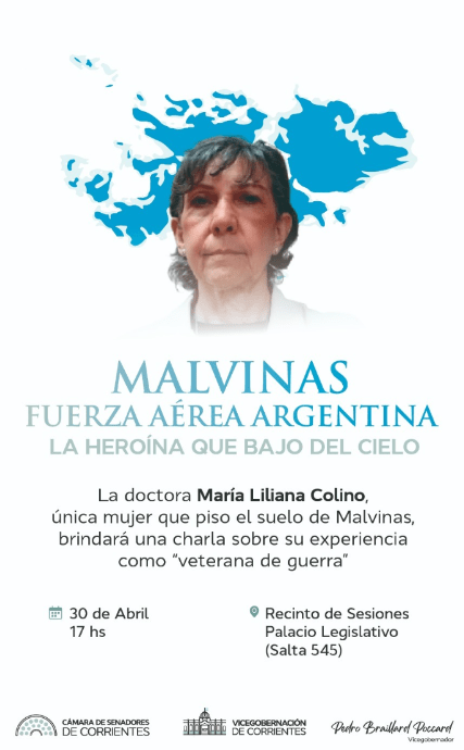 El próximo jueves 30 de abril a las 17 horas, se llevará a cabo en el recinto del Palacio Legislativo la charla titulada “La heroína que bajó del cielo”, a cargo de la Dra. María Liliana Colino, quien visitará nuestra provincia para compartir su valiosa experiencia.