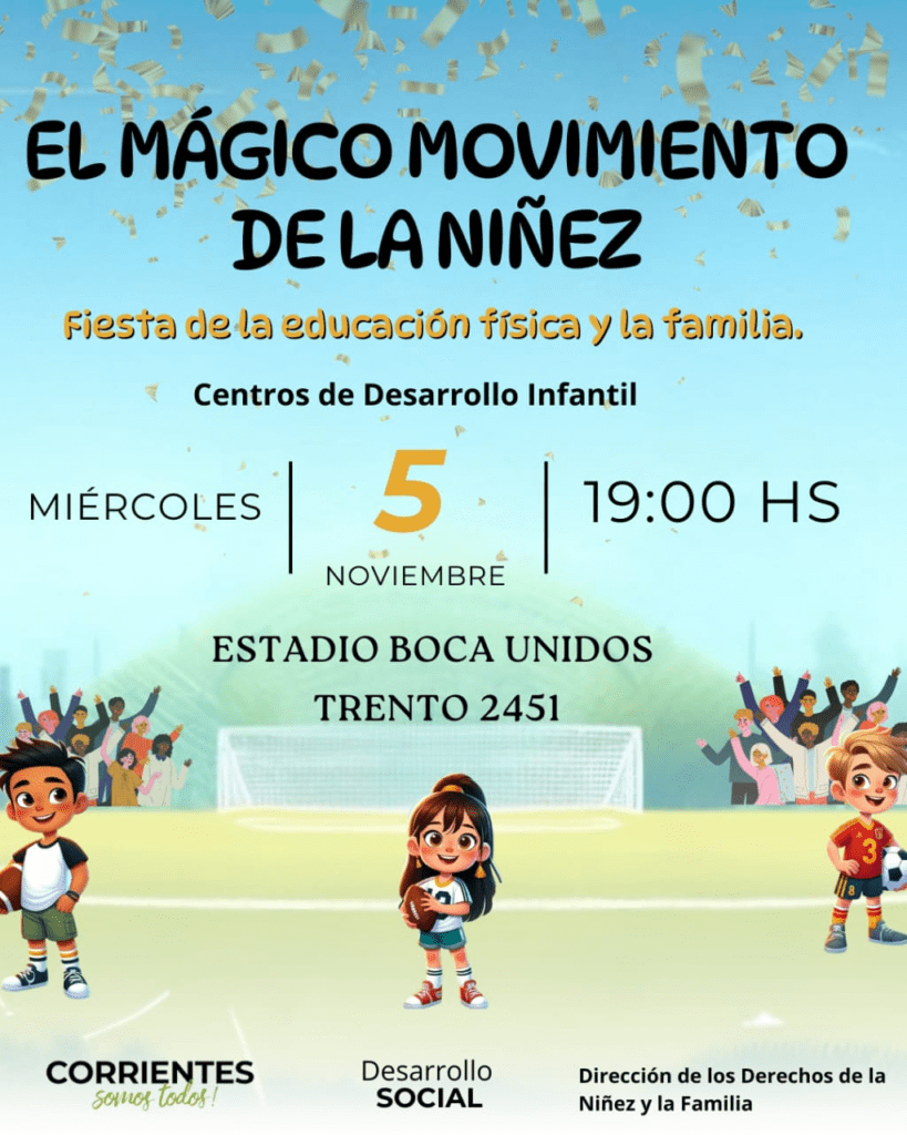 Niños de los Centros de Desarrollo Infantil dependientes del Gobierno Provincial, y a través del Ministerio de Desarrollo Social, realizarán su demostración anual de Educación Física. La actividad será el miércoles 5 de noviembre a partir de las 19 horas en el Estadio Club Boca Unidos, sito en la calle Trento 2154.